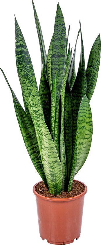 De Sansevieria trifasciata ‘Zeylanica’, beter bekend als de Vrouwentong, is een sterke en stijlvolle kamerplant met diep donkergroene bladeren vol blauwgroene accenten. Dankzij zijn tropische roots en vetplant-karakter heeft hij nauwelijks verzorging nodig. Een keer vergeten water te geven? Geen probleem, dat vindt hij eigenlijk wel prettig.